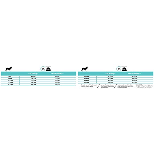 Modo de empleo y ración diaria recomendada: Consulta la tabla para la cantidad diaria de alimento recomendada. Estas cantidades son solo una guía. Para ayudar a mantener a tu perro en una condición corporal ideal, ajusta las cantidades según el nivel de actividad de tu perro, condición física y necesidades individuales. Dejar siempre a su disposición agua limpia y fresca. Para mantener a tu perro saludable, consulta a tu veterinario regularmente.