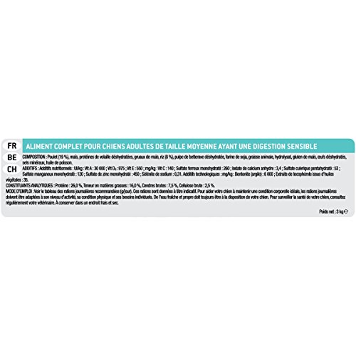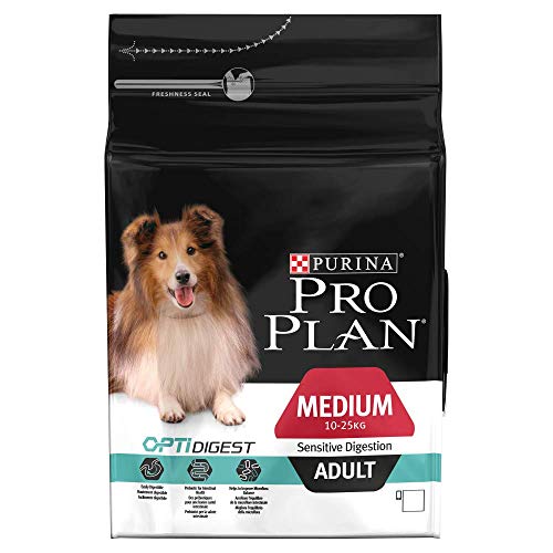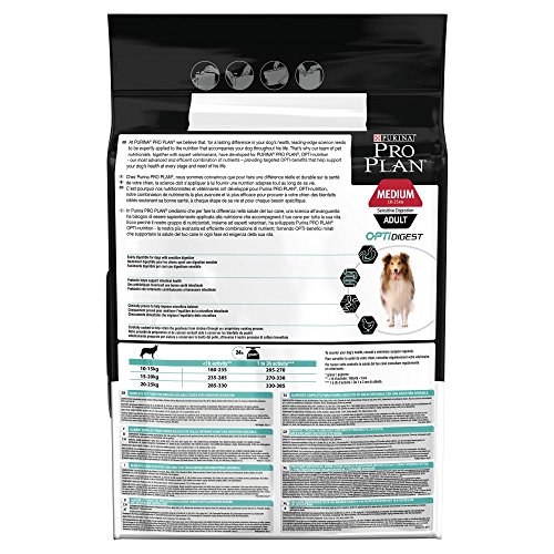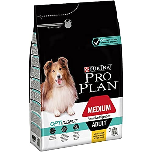 Purin Pro Plan Medium Adult Sensitive Digestion con Optidigest rico en pollo es un alimento seco completo para perros de razas medianas con una digestión sensible.