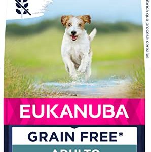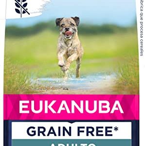 Eukanuba Grain Free* Alimento para perros adultos de raza pequeña y mediana, receta baja en alérgenos, 12 kg