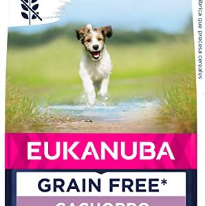 Eukanuba Grain Free* Alimento para cachorros de perro de raza pequeña y mediana, receta baja en alérgenos, 3 kg