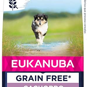 Eukanuba Grain Free* Alimento para cachorros de perro de raza pequeña y mediana, receta baja en alérgenos, 12 kg